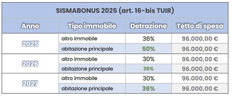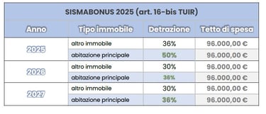 Per gli interventi definiti comunemente sismabonus di cui all’art. 16 del DL 63/2013 c.1 bis fino a sexies sono previste le stese detrazioni viste prima: