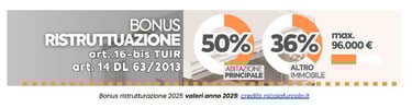 Per gli interventi di recupero del patrimonio edilizio previsti dall’art. 16-bis del TIUR la manovra prevede (al comma 54) la riduzione della detrazione in via definitiva al 30% con tetto di spesa a 48.000 € già a partire dal 2025 (era prevista al 2028).